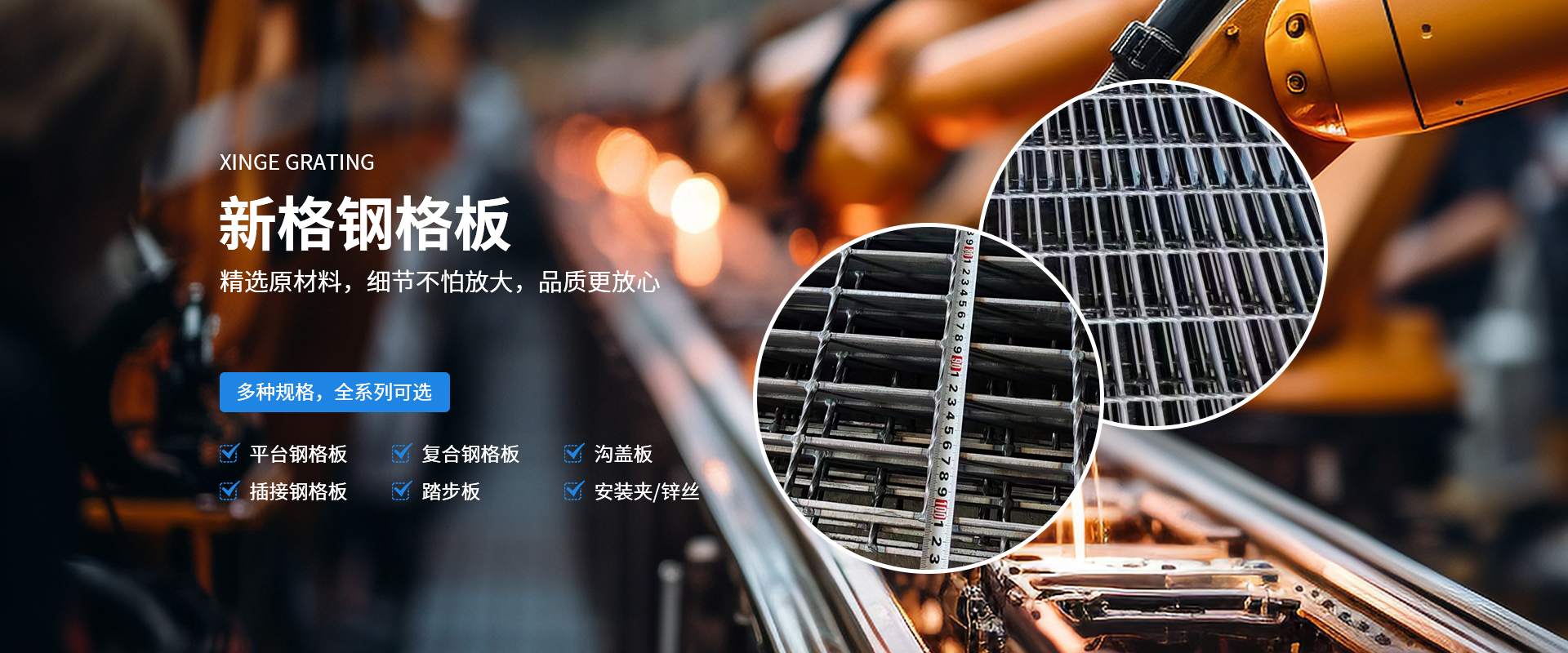 河南新格重工有限公司成立于2007年,占地36000余平方米,是河南省專注于鋼格板設計、制造、銷售的加工制造企業。公司一貫秉承“打造全國鋼格板基地”的企業理念,在“創新、務實、奉獻”的企業精神指引下,逐漸成長為一家具有現代化管理理念、優良的企業文化及靈活的經營機制的創新型加工制造企業。  公司采用目前世界上前衛的制造技術,由計算機控制的鋼格板壓阻焊機制造,機械手自動將橫桿橫放在均勻排列的扁鋼上,通過強大的電焊功率和液壓力將橫桿壓焊入扁鋼內,從而得到焊點固定、穩定性高、強度大的高質量鋼格板。公司擁有成熟的CAD設計、制造技術以及優良的工程設施經驗,獨立自主的進出口貿易資質,通過ISO9001資質體系認證。所生產的鋼格板系列產品從外觀質量、尺寸公差、焊接質量等方面均滿足客戶的需求。公司可按中國鋼格板YB/T4001.1-2007標準生產,也可按符合美國ANSI/NAAMM(MBG531-88)、英國BS4592-1987、澳大利亞AS1657-1985等標準進行生產。產品暢銷全國三十多個省、市、自治區,并有部分產品出口到國外,給上百家大型企業提供了堅實可靠的服務,得到了廣大用戶的一致肯定?! 」臼冀K堅持“視品質為生命,視顧客為上帝”的經營宗旨,依托成熟的技術力量及良好的企業信譽,竭誠為廣大用戶提供高質量的產品及全方面的售前、售中、售后服務。  我們全體新格人將帶著真誠的期望,一如既往地以具有競爭力的價格、高質量的產品為工程項目提供盡善盡美的服務,并希望與用戶單位建立長久有好的合作伙伴關系!